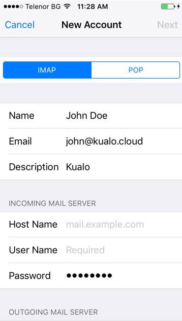 Role para baixo até SERVIDOR DE CORREIO DE ENTRADA e toque em Nome do Host.