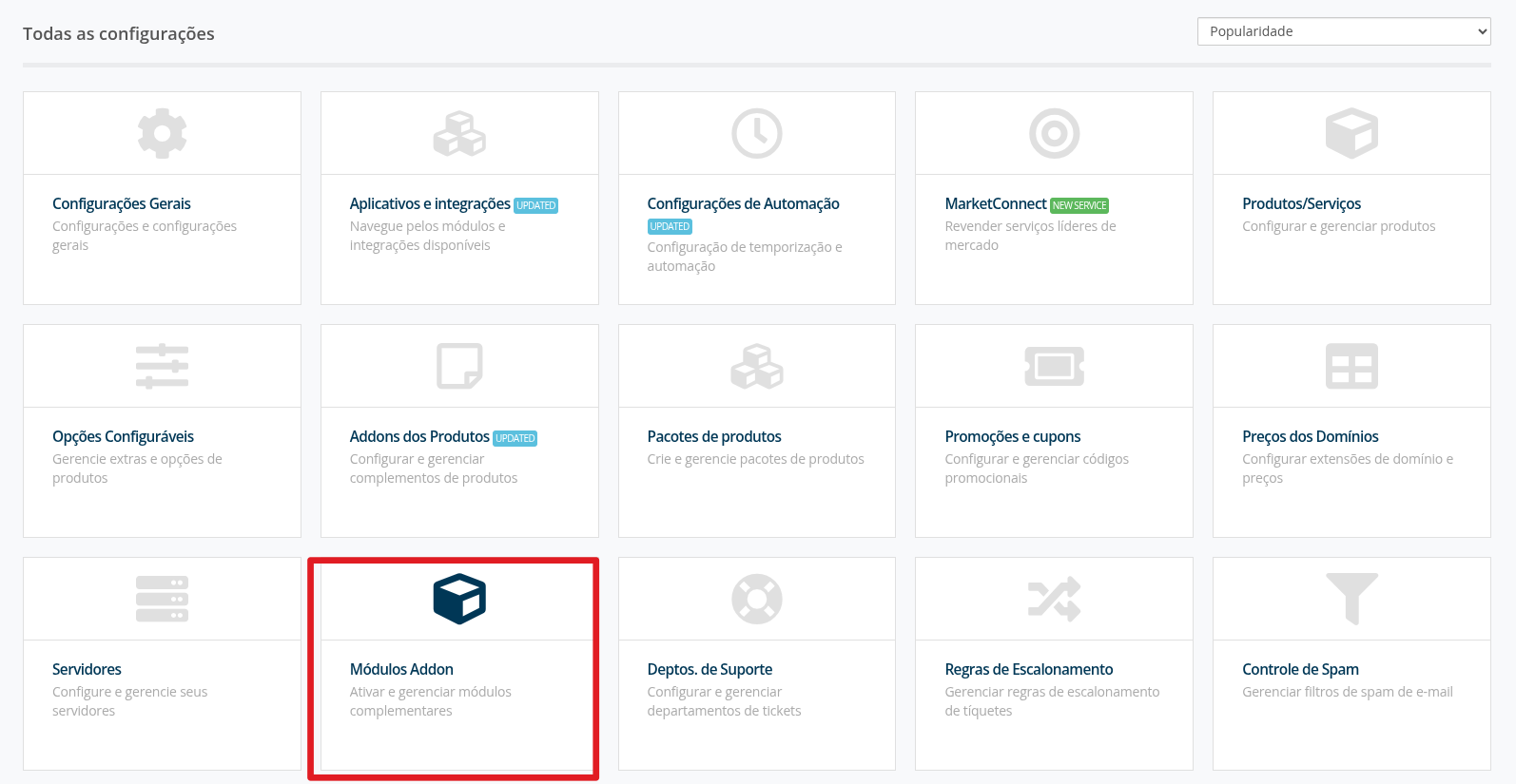 - Acesso ao painel admin do WHMCS com permissão para gerenciar addons