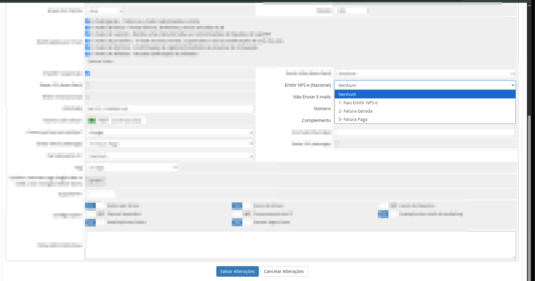 1- Nao Emitir NFS-e. Se o campo do cliente estiver vazio (herdando o global), a emissão manual continua disponível. -